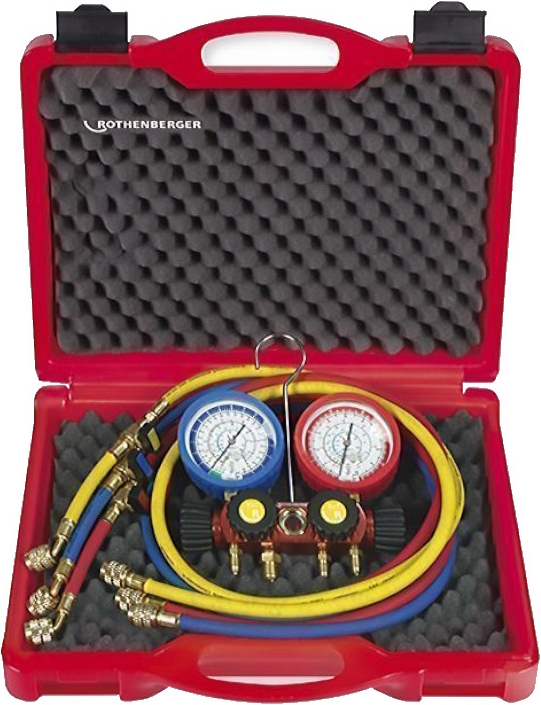 - Четырехпозиционный аналоговый манометрический коллектор для хладагентов R22, R134A, R407C, R404A Rothenberger 1/4 SAE