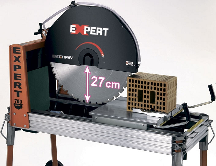 Камнерезный станок Battipav Expert 700 (Баттипав Эксперт 700) с водяным охлаждением режущего алмазного диска предназначен для прямой (до 580 мм) и диагональной (до 389 × 389 мм) резки кирпича, камня, природного камня, гранита, мрамора, бардюров, бетонных блоков, мраморных и гранитных плит, керамогранита, с максимальной глубиной резки до 340 мм (двойной проход), под прямым углом. Идеально подходит для строительной промышленности.