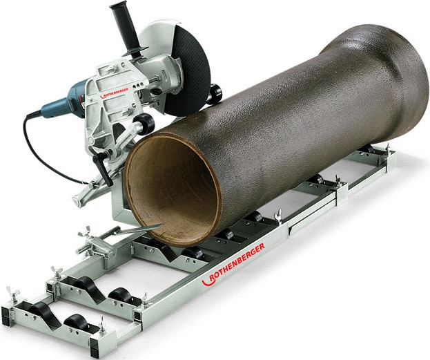 Модель снята с производства! Приспособление для резки труб Rothenberger Trennboy 300 (Ротенбергер Треннбой 300) используется с обычными углошлифовальными машинками (УШМ) с дисками Ø 230 мм (не входят в комплектацию) для быстрой, точной резки под прямым углом чугунных / стальных труб до Ø 300 мм, профилей / цельных брусков сечением до 70 × 70 мм.
