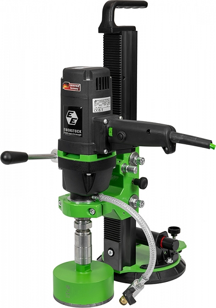 Станок для мокрого алмазного сверления плитки Eibenstock EFB 125 P Set (Айбеншток ЕФБ 125 П Сет) с вакуумным основанием предназначен для точного мокрого сверления отверстий Ø 6 – 125 мм в плитке и плитах из керамики, стекла и натурального камня для подключения смесителей и унитазов, встраиваемых светильников, выключателей и т. д.